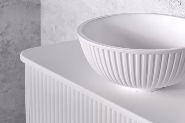 Aria - elegante, runde servanten i hvit dolomitt. Med en bredde og dybde på 40 cm, kombinerer den uvanlig form og funksjonalitet på en perfekt måte. Den blanke og glatte overflaten gir servanten et stilrent og eksklusivt uttrykk – ideell for både moderne og klassiske baderomsløsninger.