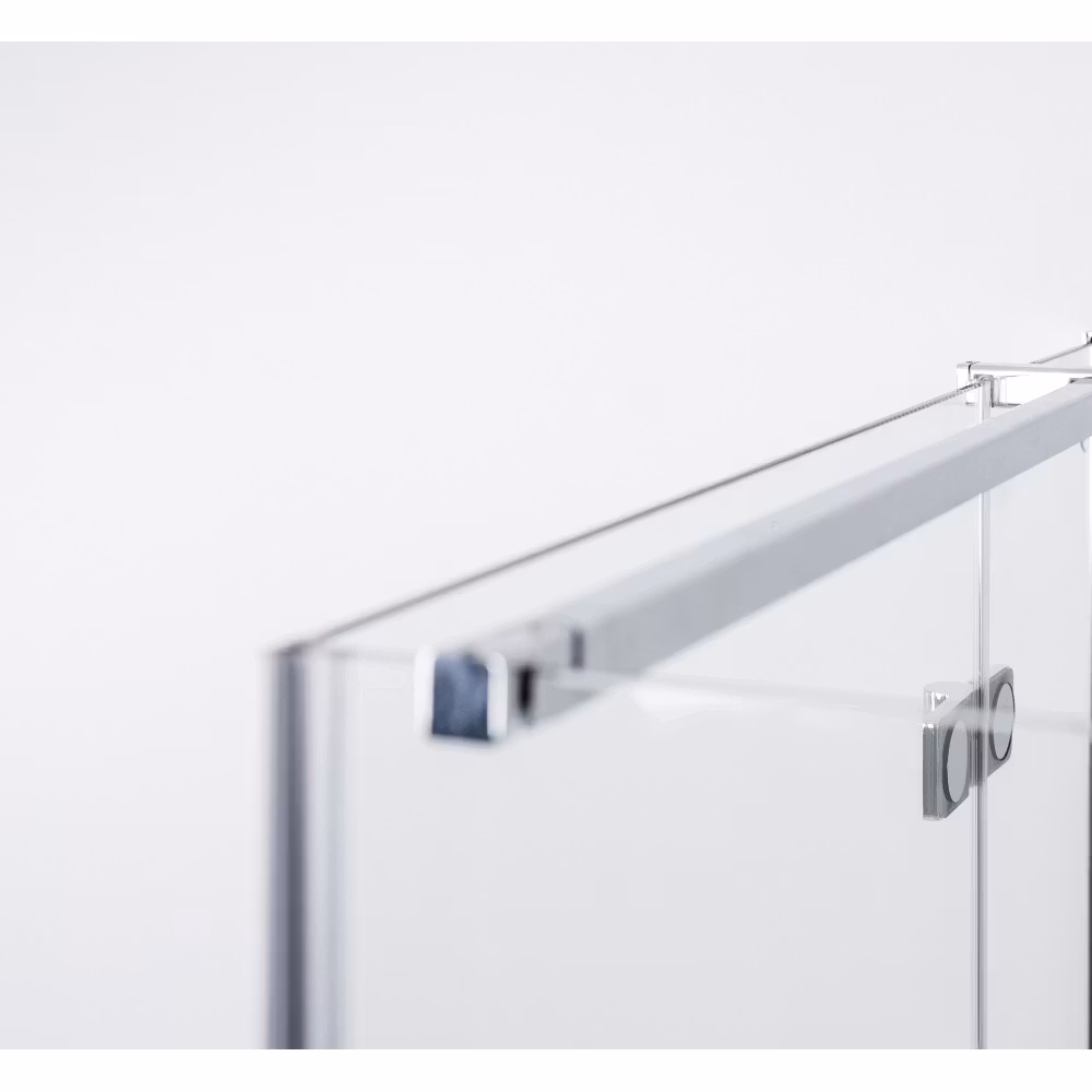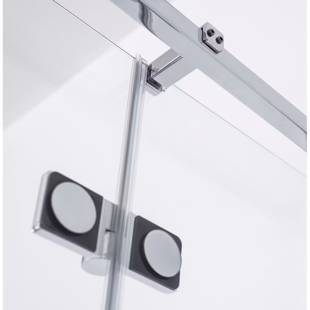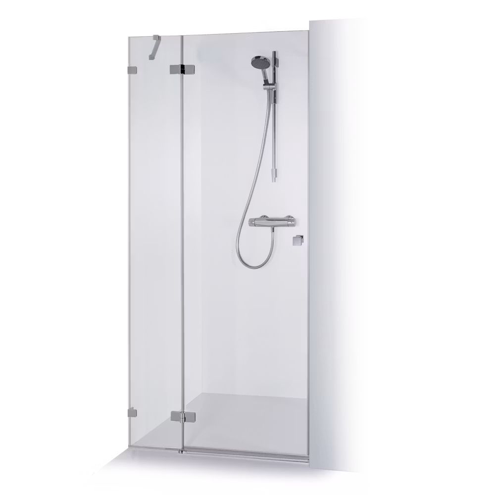 Ina Plus er rammeløs dusjdør med sideglass, hegsler integrert i glasset. Passer perfekt for smale nisjer. Døren svinger utover.