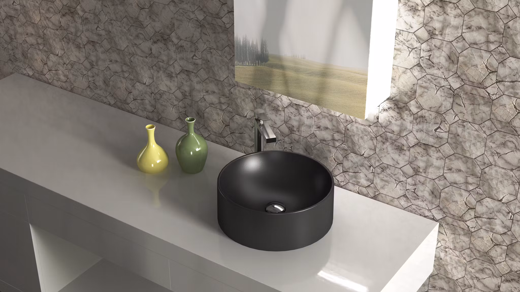 Granittkompositt servanter gir et bad den luksuriøse følelsen av en naturstein.