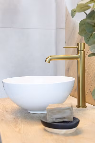 Sati servant leveres uten hull til blandebatteri, noe som gir deg full fleksibilitet til å velge veggmontert eller frittstående blandebatteri.